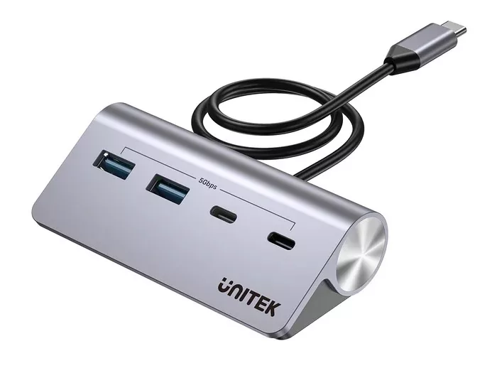 Hasta 5 Gbps de transferencia. Color: Plateado Conector: USB-C Fuente de alimentación externa Velocidad de transferencia de datos de 5 Gbps Protección inteligente contra corriente inversa Diseño ergonómico con pendiente de 33° Conectores: 2 x USB 5 Gbps 1 x USB-C Upstream 2 x USB-C 5 Gbps Downstream