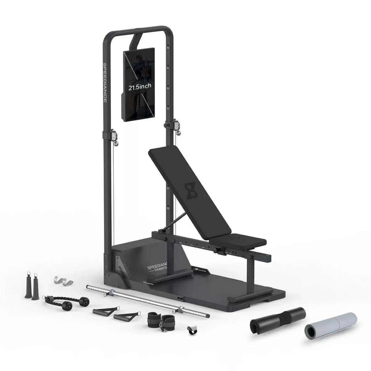 Speediance está revolucionando la forma de entrenar en casa, brindando todos los beneficios de un gimnasio completo directamente en tu sala de estar. El Gym Monster de última generación combina entrenamiento cardiovascular y de fuerza, ofreciendo un entrenamiento de cuerpo completo sin necesidad de salir de casa. Espacio limitado, posibilidad ilimitada: Disfruta de hasta 100 kg de resistencia adaptativa, más de 700 movimientos y más de 300 clases, además de modos de peso dinámicos. Con Free Lifting y el modo de pareja, podrás personalizar tu experiencia de entrenamiento de manera única. Peso y seguimiento digital: El motor con algoritmo inteligente proporciona una resistencia precisa y cómoda, eliminando la necesidad de manejar discos o mancuernas. Además, un gráfico de retroalimentación en tiempo real rastrea tus transiciones de potencia de un vistazo, optimizando tu rendimiento. Pantalla táctil inteligente: Gym Monster cuenta con una pantalla táctil avanzada y un sistema de peso integrado que facilita el acceso a programas de entrenamiento visuales y ajustes precisos al instante. Desempaca y listo: El diseño portátil de pie permite comenzar a ejercitarte inmediatamente después de sacarla de la caja, sin necesidad de montaje, taladrado o instalación en la pared. 10 ajustes de altura personalizables: Adaptá la máquina según tus necesidades para una experiencia de entrenamiento completamente ajustada a tu cuerpo. Cardio, fuerza y más: Combinala con el banco de remo exclusivo de Speediance para llevar tus rutinas a otro nivel. Explorá ejercicios de remo, esquí, HIIT y más, todo en un solo equipo. Gym Monster de Speediance es la solución perfecta para quienes buscan una experiencia de fitness completa en el hogar, con entrenamientos dinámicos, fáciles de personalizar y sin las limitaciones del equipo tradicional.