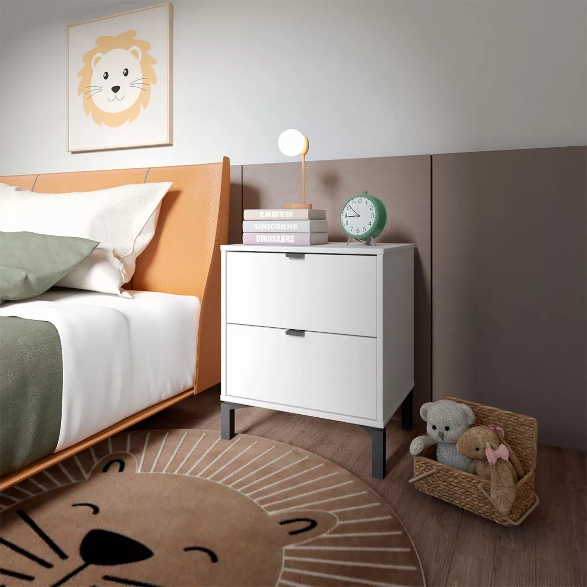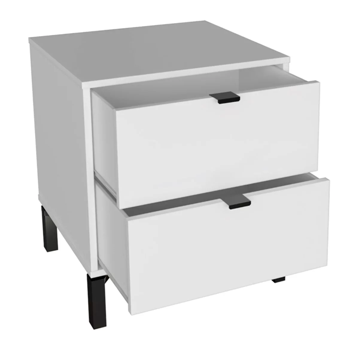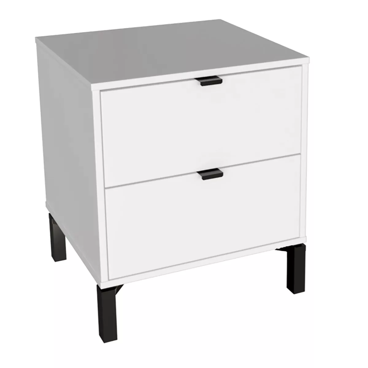 Esta mesa de luz tiene todo lo que necesitás: diseño moderno, altura ideal para camas más altas y cajones amplios para guardar todo eso que querés bien a mano y bien guardado a la vez. Fabricada en MDP con contrachapado melamínico, rieles telescópicos para un deslizamiento suave, patas en madera y tiradores metálicos, ambos detalles en color negro, aportan carácter y estilo con un toque de sofisticación. Una pieza funcional, simple y con mucha onda que eleva el estilo de tu dormitorio.