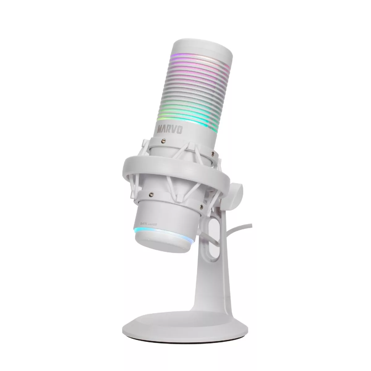 Captura tu voz con claridad excepcional. El Micrófono Marvo MIC-07 combina un diseño moderno en blanco con iluminación RGB dinámica y una conexión USB Plug & Play para una configuración instantánea. Ideal para gaming, streaming y conferencias , este micrófono de condensador cardioide garantiza un sonido nítido y enfocado, minimizando ruidos no deseados. Disfruta de una experiencia de audio superior con estilo.