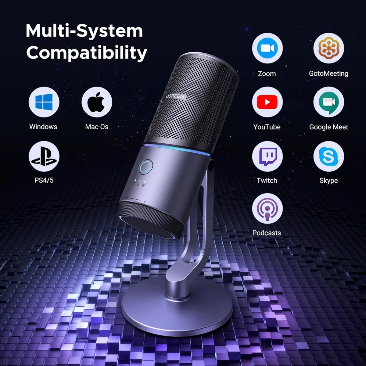 Nuevo Micrófono Ugreen profesional para PC, con 7 modos de RGB, botón de silecio, 24bit/96kHz, reducción de ruido, control de volúmen, condensador para transmisión...