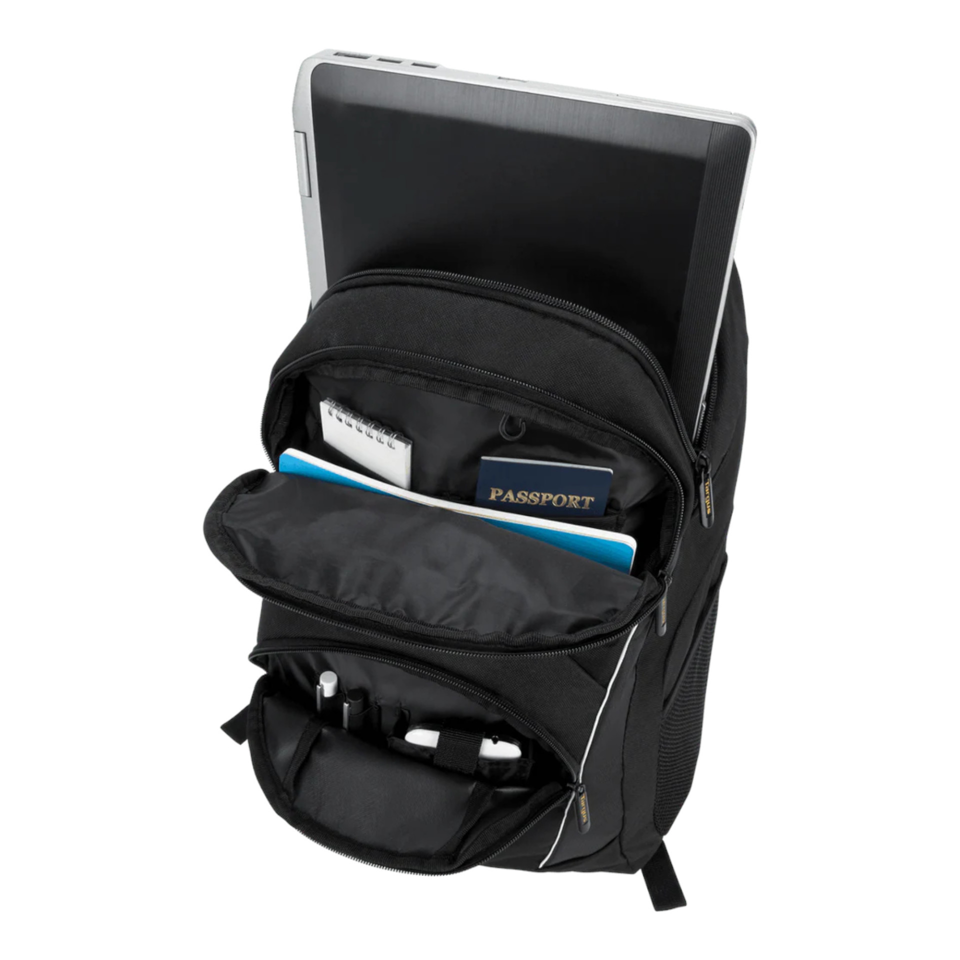 La mochila Targus Motor está diseñada para portátiles con pantallas de hasta 16 pulgadas e incluye portabolígrafos, un bolsillo interior para el móvil y un práctico clip para llavero. Las correas de hombro son acolchadas y ajustables para una comodidad personalizada.