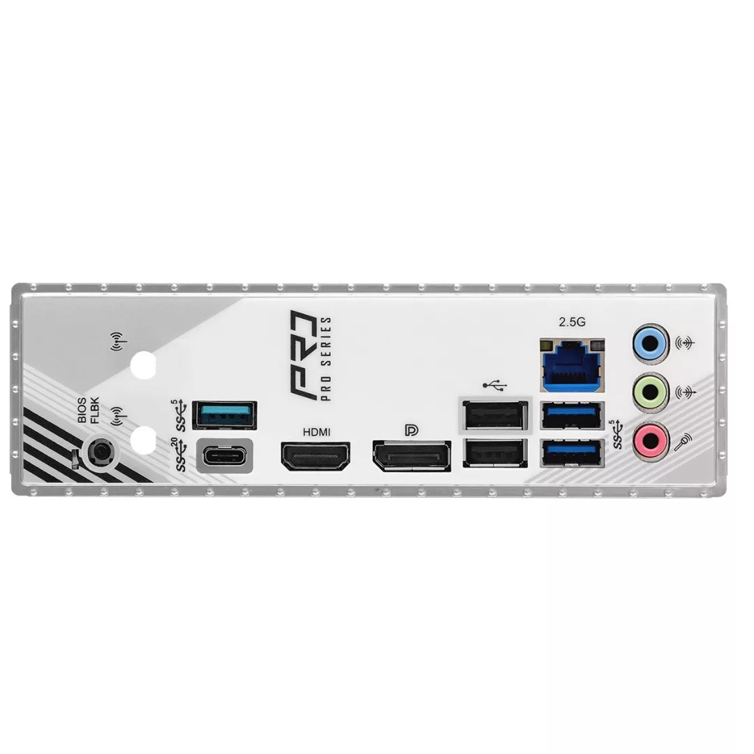 Socket 1851 Intel Ultra. DDR5. RGB Formato: Micro ATX Compatibilidad: Procesadores Intel Ultra (Series 2) Socket: 1851 Chipset: Intel B860 Memoria: DDR5 (quad channel) Almacenamiento: 1 x Blazing M.2, 2 x Hyper M.2, 4 x Sata 3 Graficos: Intel Xe LPG Audio: Realtek High Definition 7.1 integrado PCIe 5.0 X16 - 4.0 X4 Conector RGB Zocalo compatible con el módulo WiFi/BT Conector de alimentacion: ATX de 24 pines Conectores: 1 x HDMI 1 x DisplayPort 1.4 1 x USB 3.2 Gen2x2 tipo C (20 Gb/s) 3 x USB 3.2 Gen1 2 x USB 2.0 1 x LAN RJ-45 2 x puntos de montaje de antena 1 x botón BIOS Flashback Conectores de audio HD: entrada de línea / altavoz frontal / mi