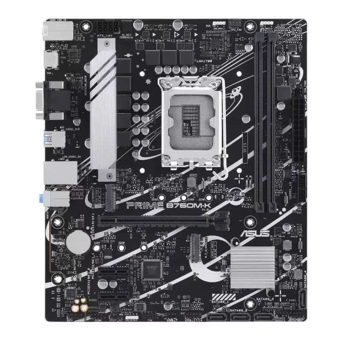 Socket 1700 Intel 12a, 13a, 14a gen DDR5 Formato: Micro ATX Compatibilidad: Intel Core 12,a 13a y 14a generacion. Socket: LGA 1700 Chipset: Intel B760 Memoria: DDR5 (Dual channel) 2 Slots (soporta hasta 64GB) Almacenamiento: 2 x M.2, 1 y 4 x SATA III (6 Gb/s) Graficos: Soporta HDMI 2.1 (4K-60HZ) Audio: Realtek 7.1 Sound High Definition integrado Conector de alimentacion: 1 x 24 pines, 1 x 8 pines Aura Sync RGB Lighting 1 conector para RGB Slots de expansion: 1 x PCIe 4.0 x16 2 x PCIe 4.0 x1 Conectores: 1 x HDMI 1 x VGA 4 x USB 3.2 Gen 1 (5G) 2 x USB 2.0 1 x Realtek 2.5Gb Ethernet 3 x Audio jacks 1 x PS/2 Keyboard/Mouse combo
