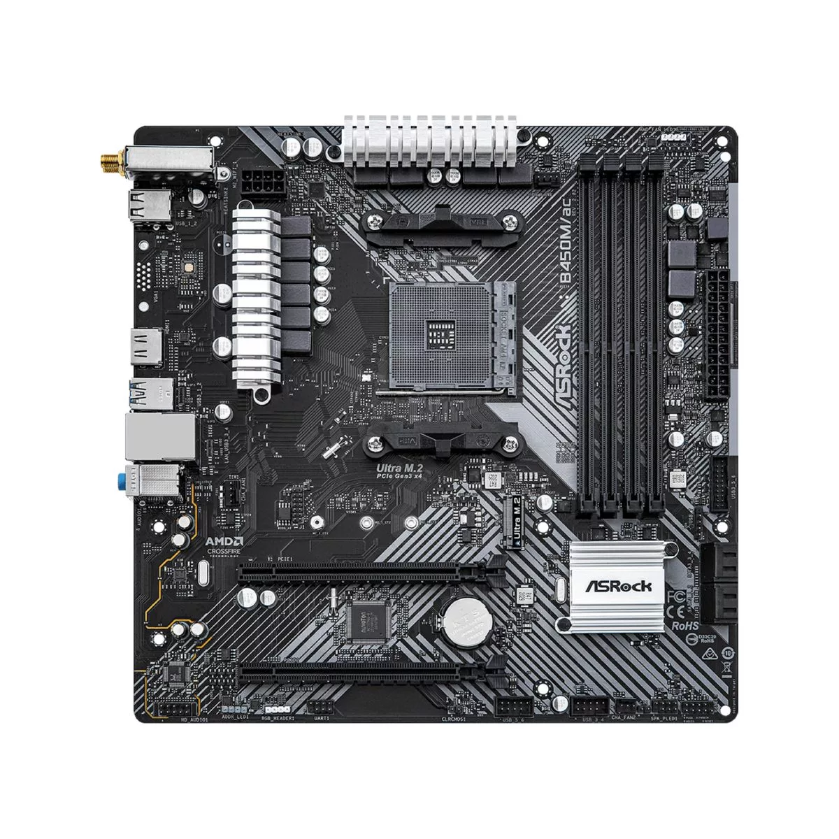 Marca Asrock Part Number B450M/AC R2.0 90-MXBEF0-A0UAYAZ CPU Soporta procesadores AMD Ryzen de socket AM4 (Ryzen 2000, 3000, 4000 G-Series, 5000 Series y 5000 G-Series Desktop) Chipset B450 Memoria - Tecnología de memoria Dual Channel DDR4 - 4 x ranuras DDR4 DIMM - CPUs AMD series Ryzen (Vermeer) Soporta DDR4 3200 / 2933 / 2667 / 2400 / 2133 BIOS - 128Mb AMI UEFI Legal BIOS con soporte GUI Multilingüe Gráficos - Gráficos AMD Radeon™ Vega Series integrados en APU de la serie Ryzen* - DirectX 1...