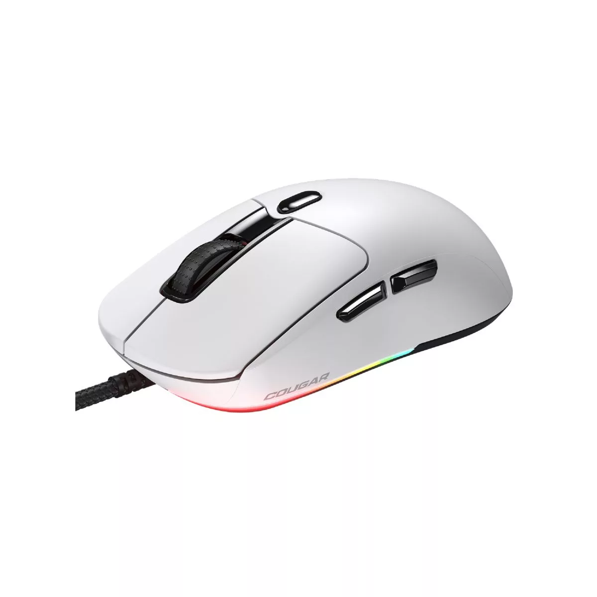 Marca Cougar Part Number 3MMEOWLW.0001 CGR-WLMW-MINEO Color Blanco Conexión Cableado Sensor PixArt PAW3327 Resolución 800/1200/1600/2400/3600/6200 DPI Ratio Refresco 1000 Hz Iluminación 5 efectos rgb Botones 5 Dimensiones 125(L) x 63.5(W) x 40.5(H) mm peso 63g