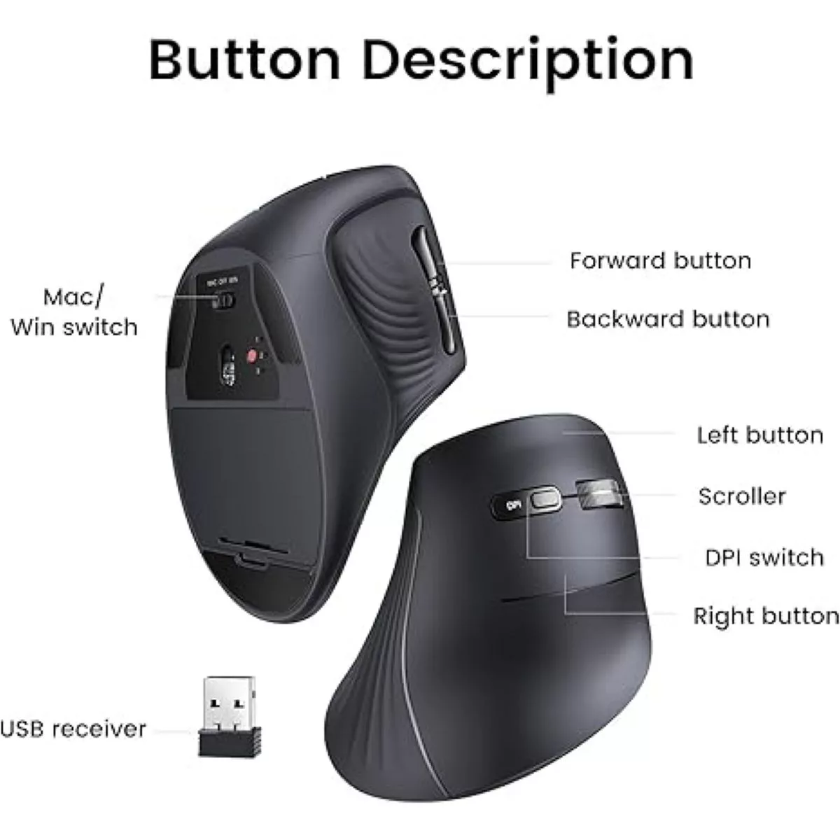 Nuevo!!! Ugreen Mouse vertical bluetooth, previene tendinitis, cuida tu salud, con 5 botones, curvatura natural de la mano con agarre cómodo, 57º en ángulo preciso, DPI hasta 4000 y niveles ajustables...