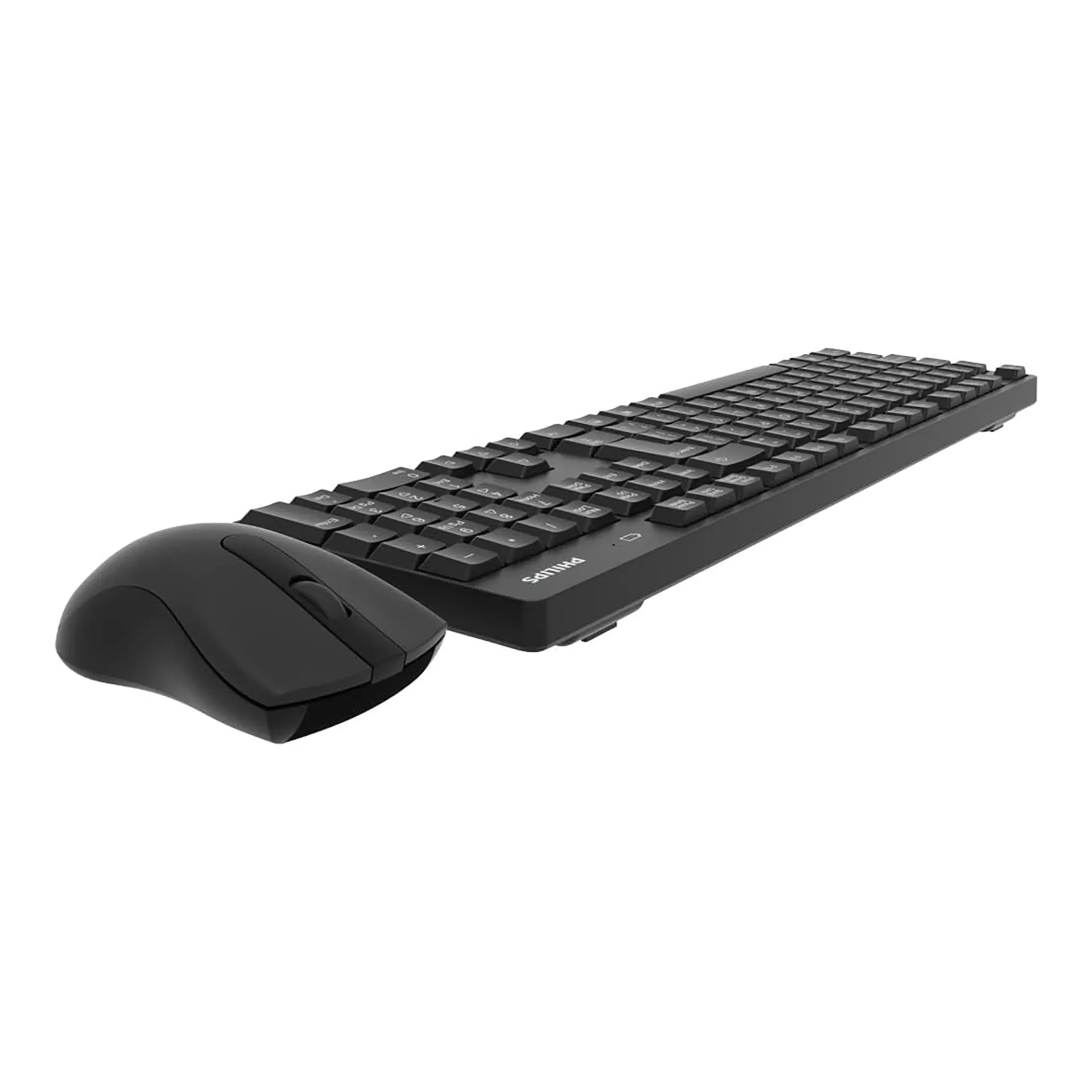 PHILIPS - MOUSE Y TECLADO INALÁMBRICOSSPT6501B/00Diseñado para tus tareas.Pensado para una vida productiva, el combinado teclado-ratón de la serie 500 ofrece un teclado y un ratón ergonómicos con un diseño impecable para un uso diario. La conectividad inalámbrica mediante el receptor libera espacio en el escritorio para que trabajes de la mejor forma posible.Diseño resistente al agua y a los derrames que facilita la limpieza.La vida puede ser algo desordenada, pero con este teclado resistente al agua, las salpicaduras o las pulverizaciones ocasionales dejarán de ser un problema. Además, su diseño es muy duradero.Conectividad: 2,4 GHz.Alcance Inalámbrico: 10 m APROX.Compatibilidad SO: WINDOWS (2000, ME, XP, VISTA, o superior) / LINUX / IOS.TECLADOTeclas: 104.Material del Panel Frontal: PLÁSTICO.Peso: 450 g APROX.Dimensiones: 432,7 x 124,8 x 26,24 mm APROX.Color: NEGRO.MOUSETipo de Agarre: Ambidiestro.Sensor Óptico: 1000 PPP.Botones: 3.Peso: 97 g APROX.Dimensiones: 112,92 x 60,63 x 37,4 mm APROX.Color: NEGRO.* Teclado en español. Imágenes sólo a modo de ejemplo.Garantía: 1 año.Contra Defecto de Fabricación.