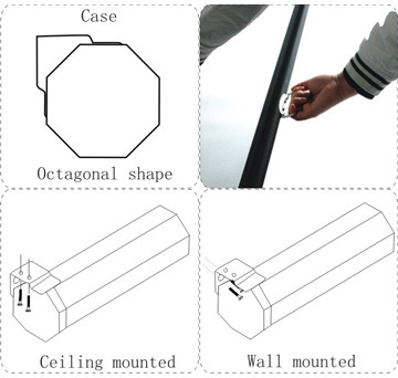Características: Carcasa de aluminio blanco Retráctil con mecanismo de retracción lenta 108 "Tamaño diagonal de la pantalla 9 relación de aspecto: 16 160 ° Ángulo de visión La ganancia de la pantalla 1.0.