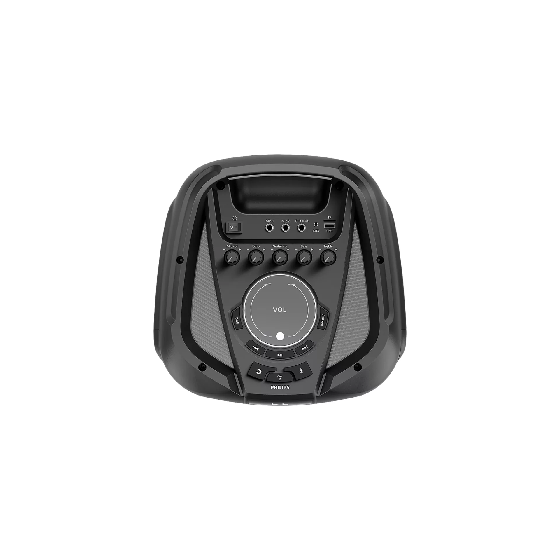 Este parlante para fiestas con Bluetooth, grande y potente, es la forma perfecta de celebrar. Presiona el botón DBB para cambiar entre las diferentes preselecciones de graves y activa el refuerzo dinámico de graves para darle a las canciones los sonidos graves que merecen.