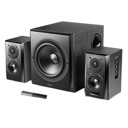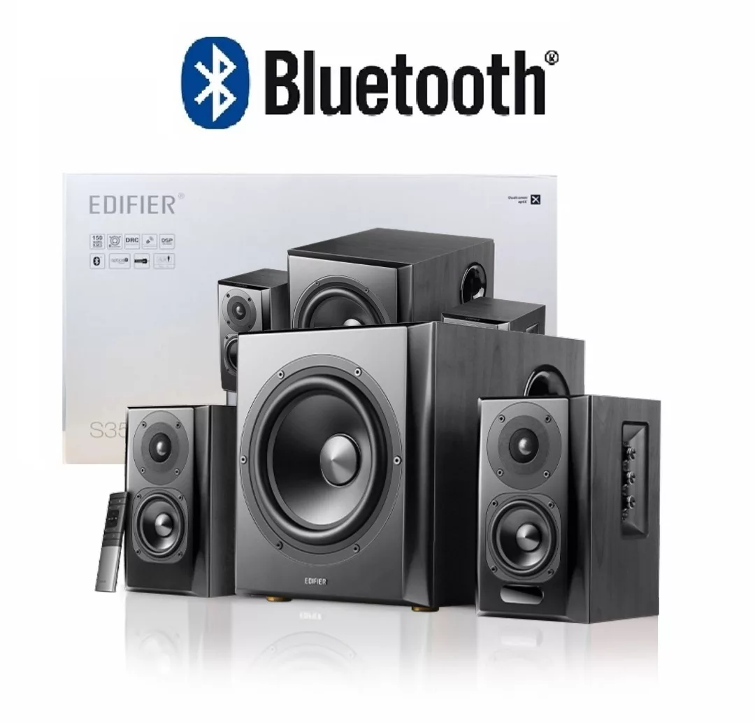 Elegante terminación. Caja de madera de calidad que minimiza la resonancia acústica y reduce la distorsión. Conexion Bluetooth 5.0, AUX y entrada optica. Potencia de salida total: 150 W RMS R/L (agudos): 15 W + 15 W, R/L (medios y graves): 25 W + 25 W, SW: 70 W Frecuencia: R/L: 160 Hz - 20 kHz / SW: 40 Hz-160 Hz Admite señales de audio digitales de 24 bits/48 kHz Medidas: Altavoz de subgraves: 312 mm x 265 mm x 289 mm Satélites: 156 mm x 127 mm x 217 mm Peso: 19.1 Kg Incluye control remoto
