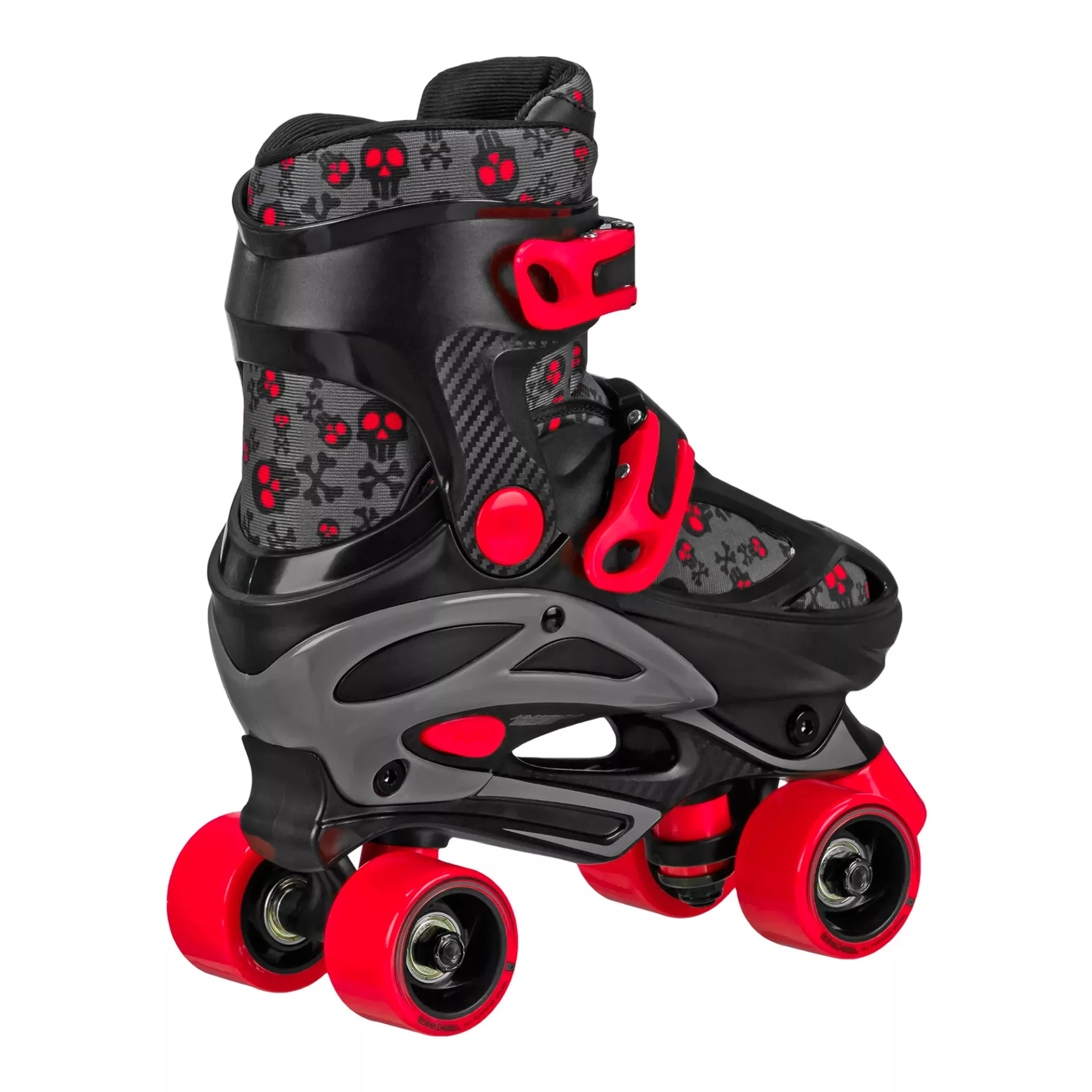 ROLLER DERBY - PATINES 2 EN 1 AJUSTABLES PARA NIÑOSSPRINTERLos Roller Derby Sprinter están diseñados para adaptarse al crecimiento de los pies, se ajustan hasta 3 tallas, ofreciendo comodidad y durabilidad para que los niños patinen con seguridad.2 PATINES EN 1! Cambia entre patines cuádruples y patines en línea para disfrutar de lo mejor de ambos. Los patines cuádruples tienen ejes reales para mayor control; los patines en línea tienen freno antihuellas en el patín derecho.Ruedas: POLIURETANO. Agarre y rebote perfectos para la pista o el pavimento.Rodamientos: SILVER 5.Talle: 3 - 6 (22 - 24,5 cm). Se ajusta la talla con solo pulsar un botón.Color: NEGRO / ROJO (SKULLS).Garantía: 1 año.Contra Defecto de Fabricación.
