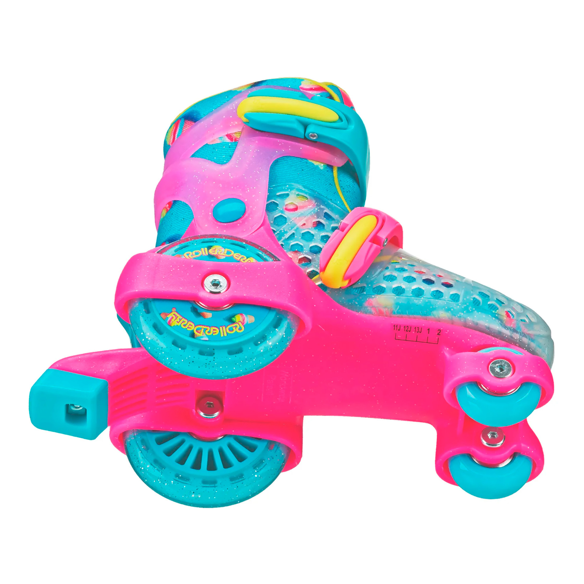 Los Roller Derby Fun Roll están diseñados para adaptarse al crecimiento de los pies, se ajustan hasta 4 tallas, ofreciendo comodidad y durabilidad para que los niños patinen con seguridad.
