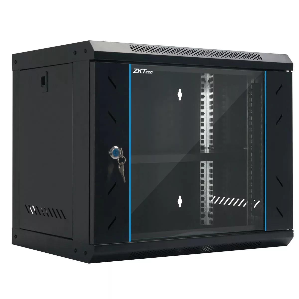Características del Gabinete Panel lateral removible, fácil de instalar y mantener. Entrada de cables en la cubierta superior y la cubierta inferior con placa de sellado incrustada. Recorte para ventilador en la cubierta superior, fácil de instalar un ventilador. Puerta frontal de vidrio templado con más de 180 grados de giro. Panel posterior para instalación y orificio para colgar, fácil de fijar en la pared. Variedad de accesorios opcionales. Introducción Breve El gabinete es un recinto independiente o autoportante diseñado para alojar equipos eléctricos o electrónicos, proporcionando protección contra agua, polvo e interferencias electromagnéticas para el equipo almacenado. Al mismo tiempo, se incluyen accesorios opcionales y accesorios de instalación adecuados para hacer que el cableado sea más conveniente, fácil de gestionar y ahorre tiempo y esfuerzo. Especificaciones Dimensiones (Ancho*Profundidad*Altura) ZK-R6U-6406S - 600*450*350