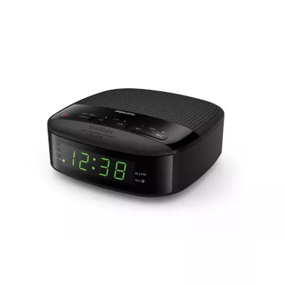 PHILIPS - RADIO RELOJTAR3205/37Manténgalo simple con este radio reloj digital FM. Un montón de presintonías hacen que la navegación por la estación sea muy fácil, y puedes configurar la alarma para que te despierte con un volumen de radio que sube suavemente. ¿Quieres dormir? Simplemente extienda la mano y presione el botón de repetición.Doble función de alarma.La función de alarma dual le permite configurar dos alarmas diferentes, y la función Despertar suave despliega un volumen de radio que aumenta gradualmente para facilitarle el día.Radio digital FM.El sintonizador de FM brinda una recepción clara y puede configurar hasta 10 presintonías para sus estaciones favoritas. La pantalla muestra la hora claramente.Tiempo de dormir.Sumérgete en un sueño reparador con tu estación favorita sonando de fondo. Puede configurar el temporizador de reposo del reloj para reproducir la radio durante un máximo de 2 horas. Una vez transcurrido el tiempo preestablecido, la radio se apaga.Numero de Alarmas: 2.Sintonizador Analógico: FM 87,5 - 108 MHz.Altavoz: 2''.Antena: FM.Potencia: 200 mW.Peso: 300 g APROX.Dimensiones: 131 x 131 x 54 mm APROX.Entrada: 100 - 240 V, 50 / 60 Hz.Consumo: