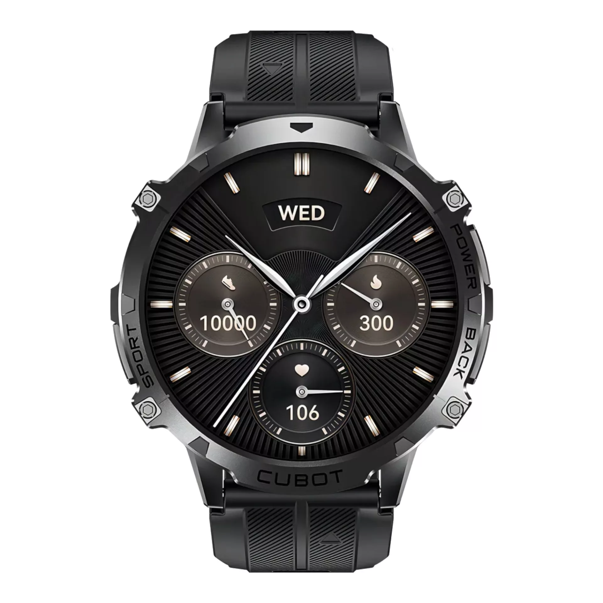 CUBOT - SMARTWATCHX3+100 MODOS DEPORTIVOS.MONITOREO DE FRECUENCIA CARDÍACA.MONITOREO DE OXÍGENO EN SANGRE.MONITOREO DE LA SALUD FEMENINA.MONITOREO DEL ESTRÉS.MONITOREO DEL SUEÑO.NOTIFICACIONES Y ALARMAS.VARIAS ESFERAS DE RELOJ.GRADO DE IMPERMEABILIDAD: 1 ATM.Pantalla: 1,73'' AMOLED, 466 x 466 píxeles.Memoria: 128 MB.Conectividad: BLUETOOTH. LLAMADAS BLUETOOTH.Sensores: Barómetro, Brújula, Altímetro.Compatibilidad: ANDROID 9 o superior / IOS 9 o superior.Dimensiones: 53,8 x 14,2 x 13,5 mm APROX.Batería: LI-PO 900 mAh.Tiempo de uso: 20 a 30 días APROX (uso diario) / 100 días APROX (tiempo de espera).Color: NEGRO.Garantía: 1 año.Contra Defecto de Fabricación.