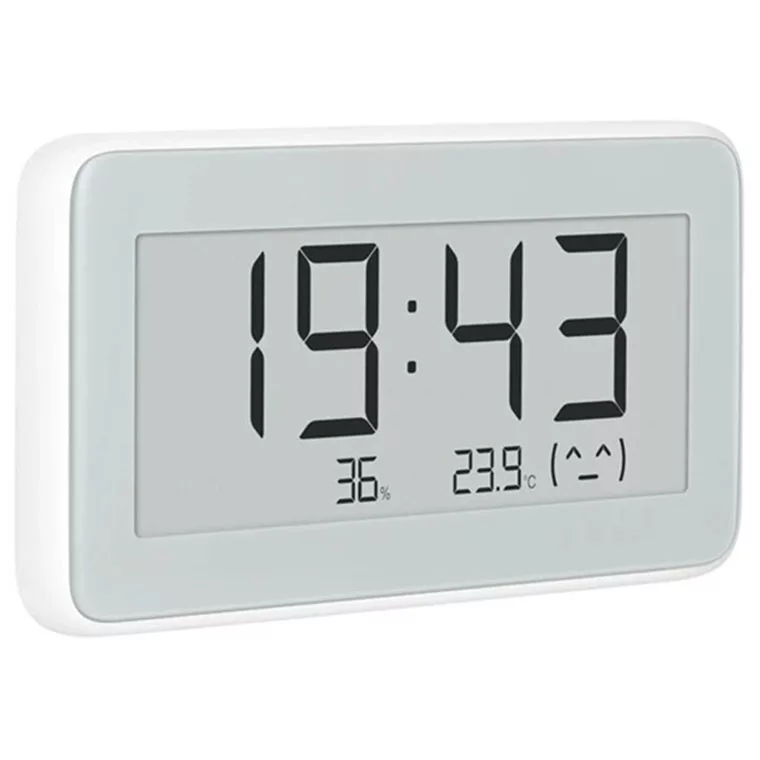 Nuevo. Reloj con termómetro y sensor de humedad. Pantalla tipo e-ink de 3.7" de ultra bajo consumo. Utiliza 2 baterías tipo CR2032. Autonomía de aprox. 1 año. Se conecta a App Mi Home para llevar registro de los datos del ambiente. Además puede conectarse a otros dispositivos Xiaomi (ej.: deshumidificador). Conexión Bluetooth Low Energy 5.0. Dimensiones: 110 x 55 x 10.1mm. Peso: 57g.