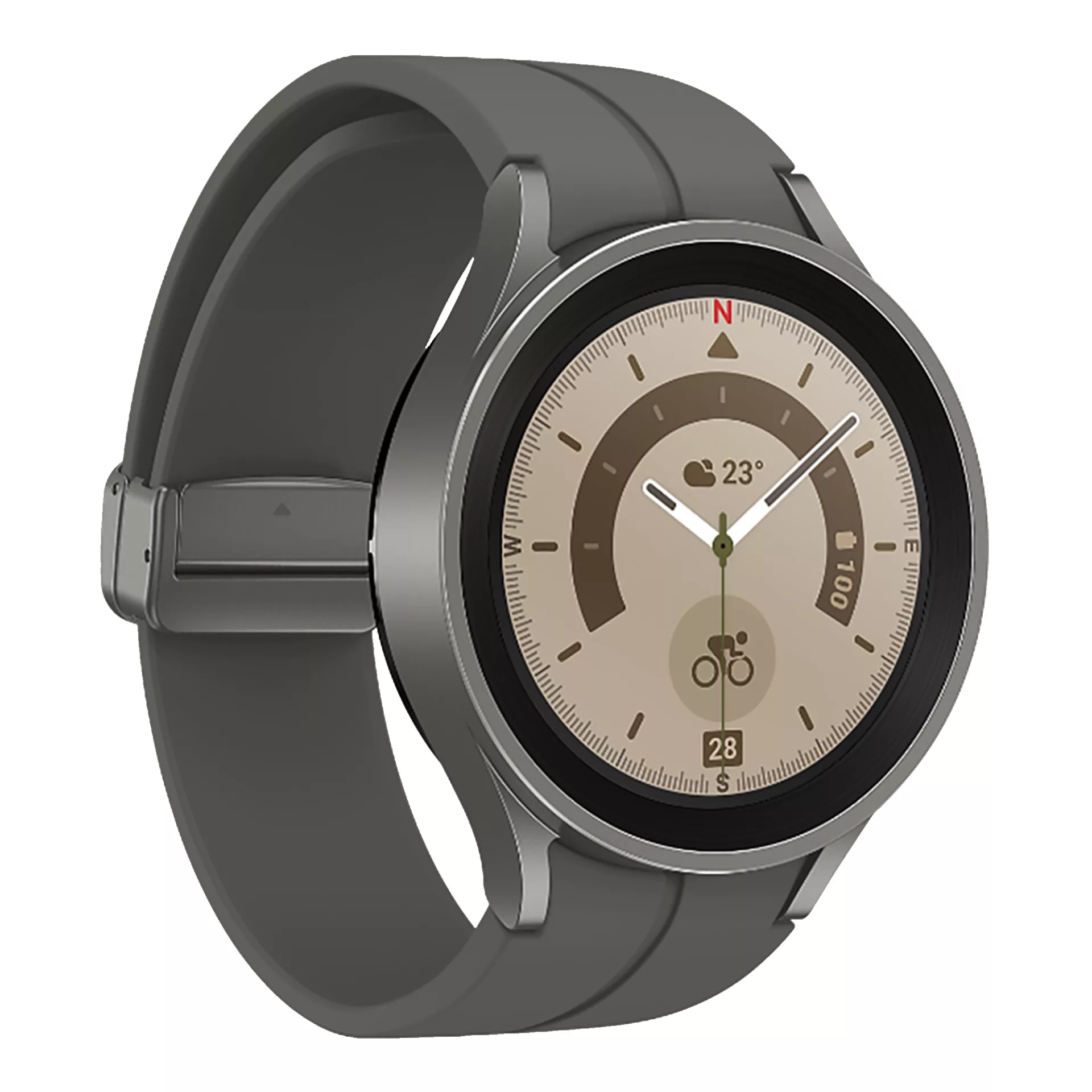 SAMSUNG - SMARTWATCHGALAXY WATCH5 PRO 45 MMMás fuerte que tu entrenamiento más duro.Se ve indestructible! con su pantalla frontal 2 veces más resistente de cristal de zafiro y su con cuerpo de titanio para lograr grandes éxitos.Paso a paso haz un seguimiento de lo que quemas.La Función Route Workout te permite importar rutas de entrenamiento en formato GPX desde tu teléfono inteligente a tu reloj, sincronizando tu lista de rutas. Sigue la distancia y, luego, usa Track Back para regresar al inicio. Mantener el rumbo es fácil gracias a la navegación paso a paso guiada por voz o vibración para ciclistas y excursionistas.Cuenta pasos, calorías y más.Tu reloj detectará la actividad física para realizar un seguimiento de tus rutinas y admitirá más de 90 ejercicios. Luego, verifica tu progreso en tu dispositivo.Controla tu cuerpo de adentro hacia afuera.Todos los comentarios personales que necesitas para mantener el rumbo, con información sobre el porcentaje de grasa corporal (BIA) hasta el peso de los músculos.No pierdas el ritmo.Potente Sensor 3 en 1 Samsung BioActive que controla tres sensores de salud de manera efectiva: frecuencia cardíaca óptica, corazón eléctrico y análisis de impedancia bioeléctrica. Monitorea tu frecuencia cardíaca y presión arterial para hacer un seguimiento de tu salud cardiovascular.Seguimiento del sueño de la A a la Z.La tecnología de seguimiento del sueño mejorada hace un seguimiento de tus etapas del sueño para ayudarte a crear hábitos de sueño más saludables e identificar tu tipo de sueño a través de 8 símbolos de sueño animal. También recibirás informes nocturnos del sueño para que puedas descansar tranquilo. arterial y ayudarte a controlar la presión arterial alta o baja.Haz tuyo tu reloj con Google.Todo lo que necesitas en la palma de tu mano, bueno, en realidad en tu muñeca. El sistema operativo Wear independiente facilita la instalación de aplicaciones como Google Maps o Youtube Music.ADMITE MÁS DE 90 EJERCICIOS.RUTAS DE ENTRENAMIENTO / SEGUIMIENTO DE VUELTA.RASTREO DE RUTA CON GPS.MEDICIÓN DE LA COMPOSICIÓN CORPORAL.MEDICIÓN DE LA FRECUENCIA CARDÍACA.MEDICIÓN DE LA PRESIÓN ARTERIAL.SEGUIMIENTO DEL SUEÑO.MÚLTIPLES ESFERAS DEL RELOJ.Cumple con MIL-STD-810H, protección contra: caída, vibración y rangos extremos de altitud, temperatura y humedad.Certificación: 5ATM + IP68.Pantalla: 1,4'' TÁCTIL SUPER AMOLED, 45 mm, 450 x 450 píxeles. Cristal de Zafiro.Procesador: 2 CORE, 1,18 GHz.Sistema Operativo: SAMSUNG WEAR.Memoria RAM: 1,5 GB.Almacenamiento: 16 GB.Conectividad: WIFI 802,11 a/b/g/n, BLUETOOTH 5.2.GPS.NFC.Sensores: Acelerómetro, Barómetro, Geomagnético, Giroscópico, Luz.Sensores de Salud: Frecuencia Cardíaca, Análisis de Impedancia Bioeléctrica, Corazón Eléctrico.Material del Cuerpo: TITANIO.Peso: 46,5 g APROX (sin pulsera).Dimensiones Caja: 45,4 x 45,4 x 10,5 mm APROX.Batería: 590 mAh.Timepo de Uso: 80 h APROX.Color: GRIS (GRAY TITANIUM).Garantía: 1 año.Contra Defecto de Fabricación.