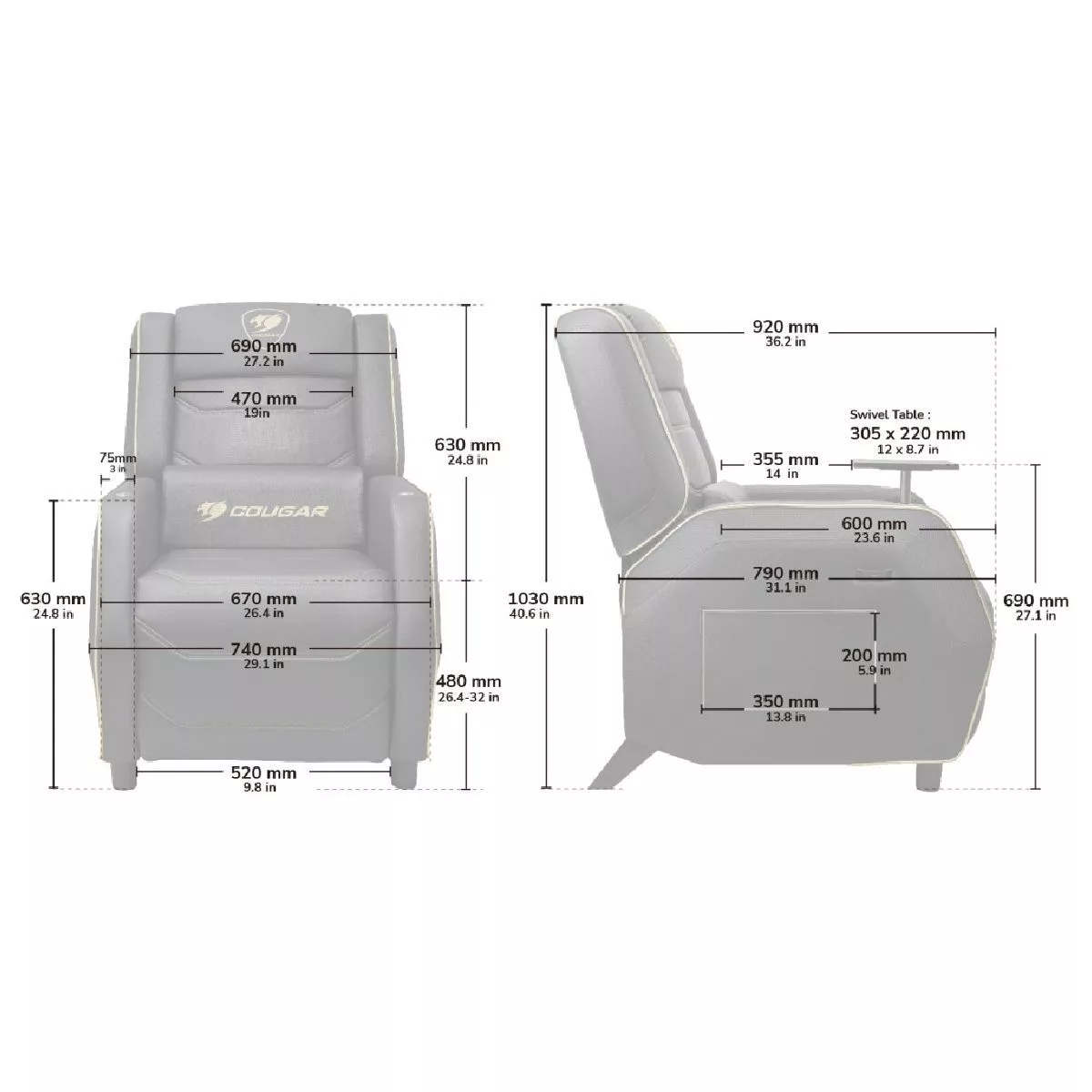 Marca Cougar Part Number 3MRGSGLB.0001 Tipo Sofá Cougar Ranger S Royal Colores Dorado Medidas Alto 1030 mm Ancho 740 mm Peso Soportado 160 Kg