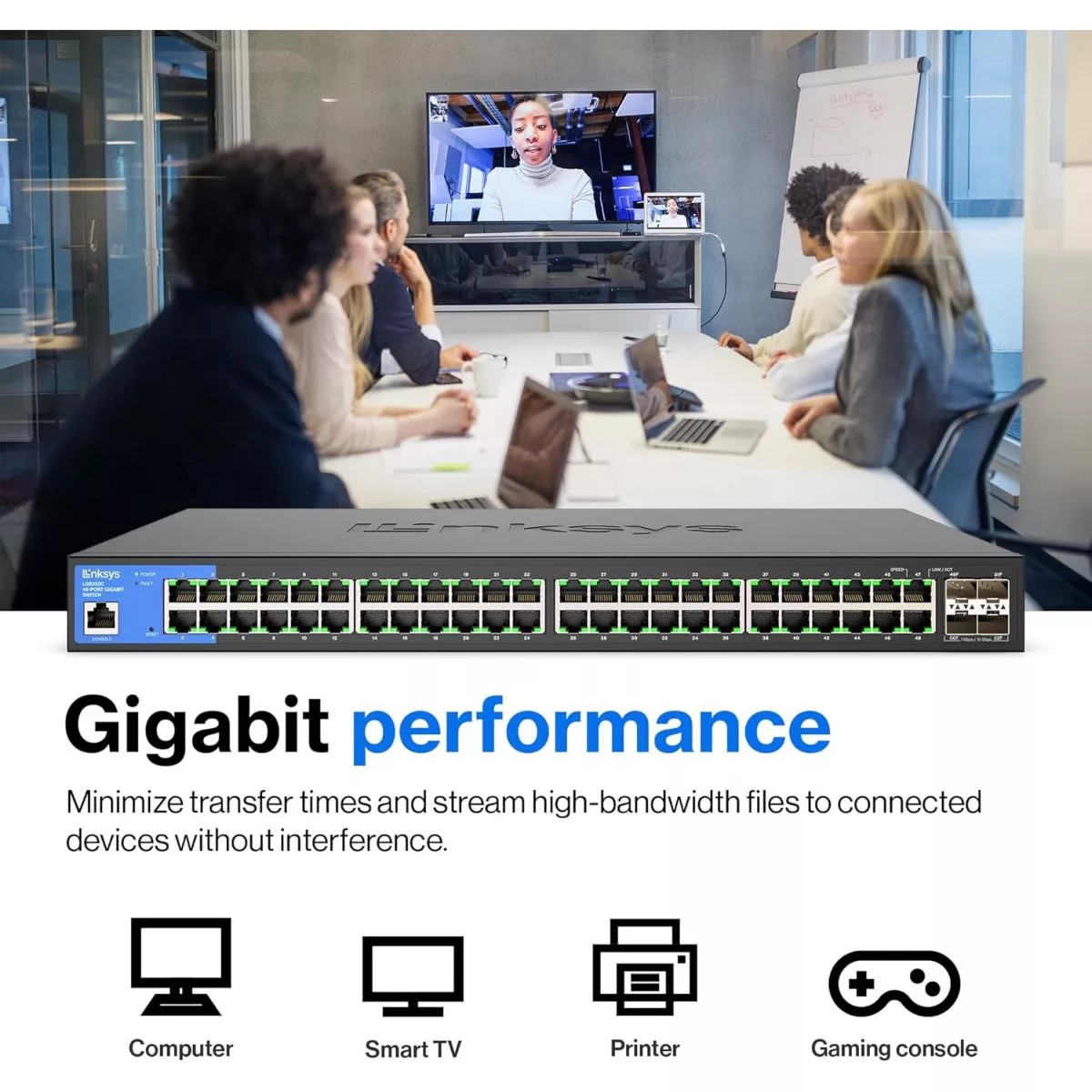 Con el Switch Linksys LGS352C 48pt Gbit, tu red empresarial contará con un rendimiento robusto y seguro, soportando aplicaciones críticas y optimizando la conectividad de todos tus dispositivos de alto rendimiento.
