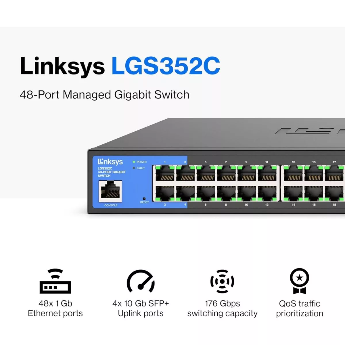 El Switch Linksys LGS352C 48pt Gbit está diseñado para ofrecer seguridad y velocidad en redes empresariales. Con una infraestructura de conmutadores Gigabit administrados, este dispositivo proporciona una red de clase empresarial, ideal para entornos con altas exigencias de conectividad.