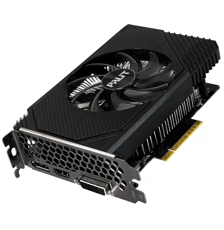 Memoria GDDR6 Memoria: 6GB Tipo: GDDR6 Interfaz: 96 bit Resolucion digital maxima: 7680 x 4320 (8K) Reloj de graficos: 1042 MHz Reloj de boost: 1470 MHz Reloj de memoria: 14 Gbps Núcleos CUDA: 2304 Ancho de banda de memoria (GB/sec) 168 PCI-E 4.0 Potencia: 70W Fuente recomendada: 300W (reales) Dimensiones: 162 x 117 x 40 mm Peso: 600g Conectores: 1 x HDMI 2.1 1 x Display Port 4.1 1 x DVI