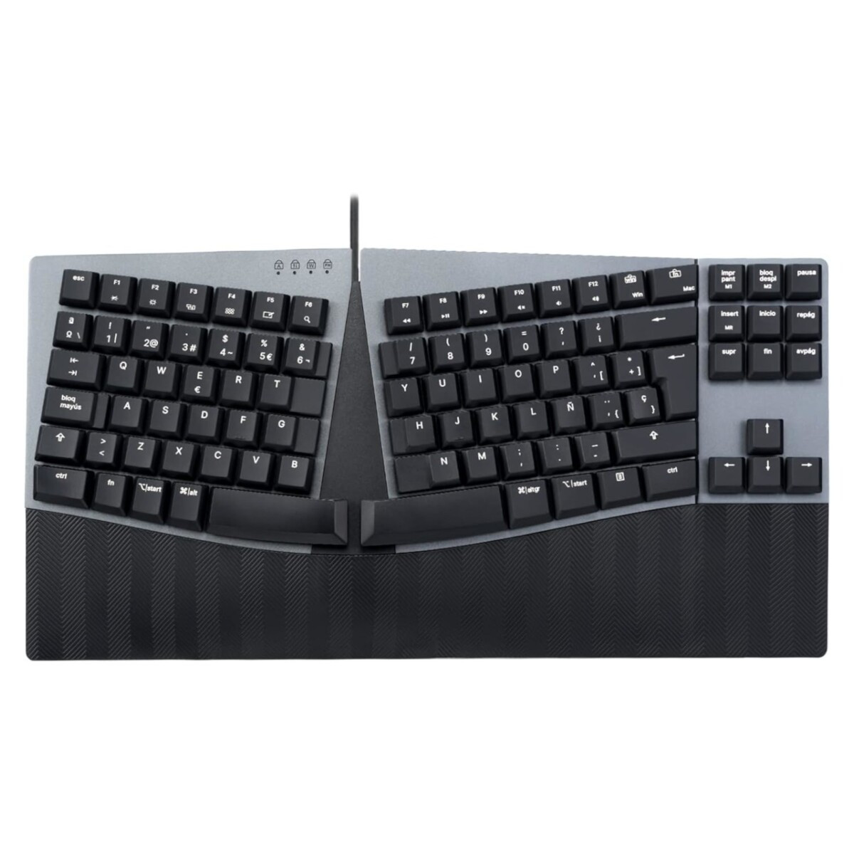 Las teclas están separadas en dos secciones, el marco del teclado está ligeramente inclinado para ayudar a colocar las manos al ancho de los hombros y evitar torsiones antinaturales de las muñecas. Un diseño de teclado diseñado para adaptarse a su cuerpo.