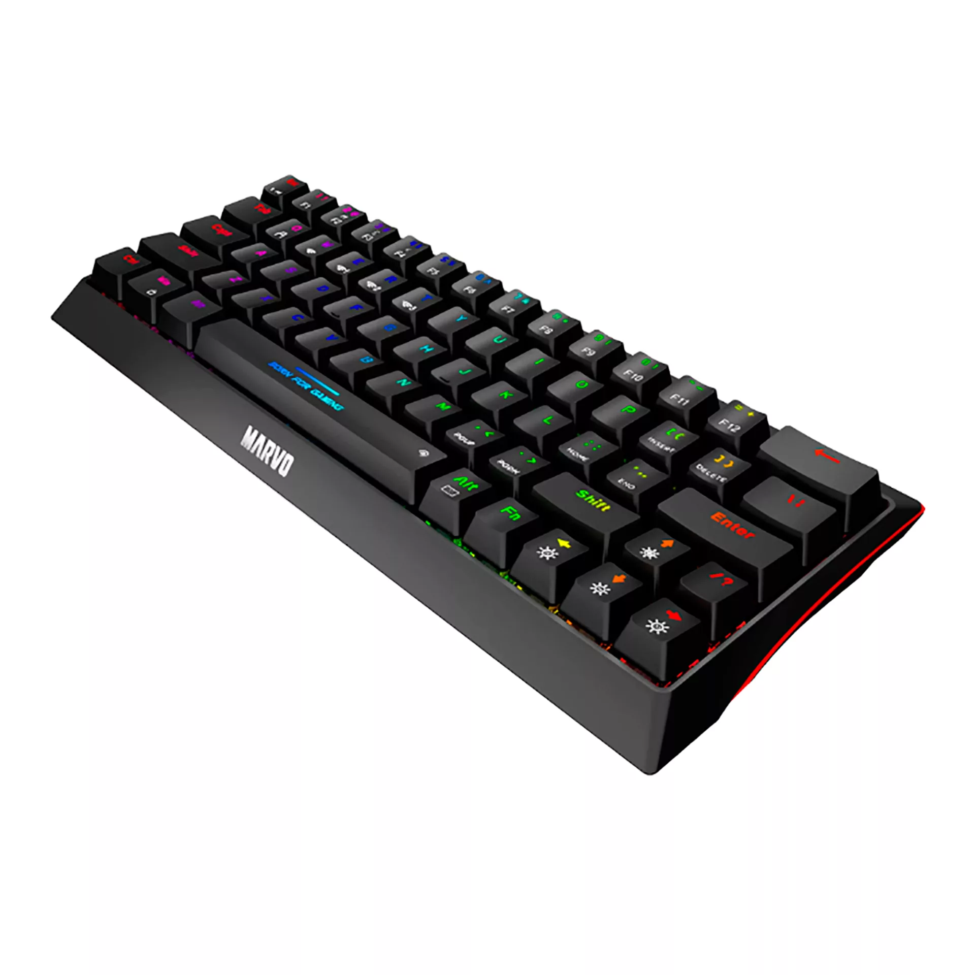 MARVO - TECLADO GAMING INALÁMBRICO ESPAÑOL CON ILUMINACIÓN KG962W● 3 modos de conexión: CABLE, 2,4 GHz, BLUETOOTH.● Diseño clásico 60% compacto.● Teclas de doble disparo con caracteres tallados con láser.● Probado con una verificación de 50 millones de clicks de teclas.● Teclado 100% anti-ghosting.● Tecla multimedia dedicada.● Ajuste de 12 modos de iluminación.● Cable USB C desmontable.TECLAS: 63.TIPO DE INTERRUPTOR: MECÁNICO.Conexión: Cableada, Inalámbrica.Conectividad Inalámbrica: 2,4 GHz, BLUETOOTH.Alcance Inalámbrico: 10 m APROX.Capuchones de Teclas: Doble disparo.Tipo de Interruptor: JIXIAN BLUE / RED.Luz de Fondo: 5 colores con 12 modos.Anti-ghosting 100%.Vida Útil: 50 millones de prensas APROX.Longitud del Cable: 1,6 m.Compatibilidad: WINDOWS 7 o +.Material: ABS.Peso: 610 g APROX.Dimensiones: 305 x 125 x 38 mm APROX.Color: NEGRO.Link del Fabricante.* Teclado en español. Imágenes sólo a modo de ejemplo.Garantía: 1 año.Contra Defecto de Fabricación.