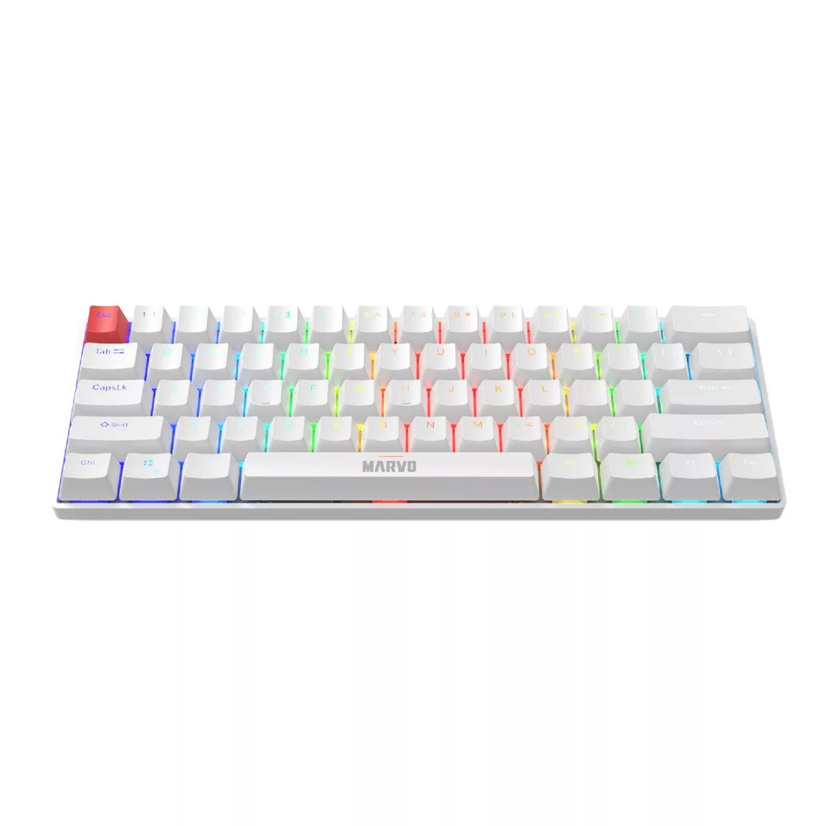 Marca Marvo Part Number KG933G-WH KG933G-WH EN Color Blanco Conexión USB-C (Cable Mallado) Mecanismo Mecánico Switch Red Switch Iluminación RGB teclado numérico No Incluye Idioma Teclado Inglés (EN) Diseño Compacto 60% / Teclas 61