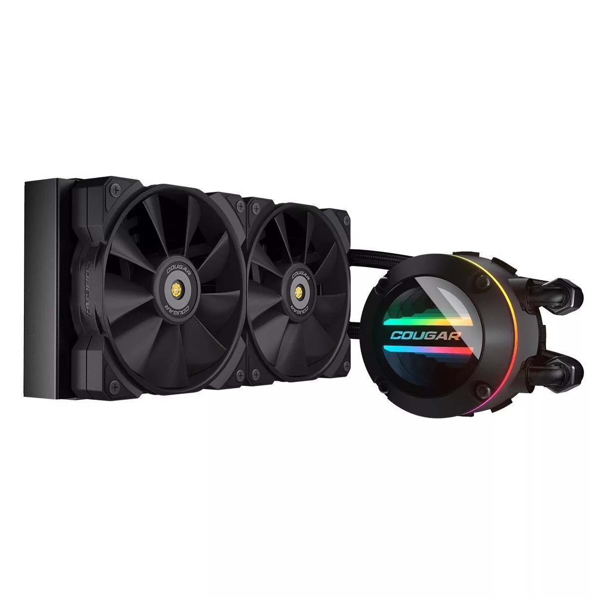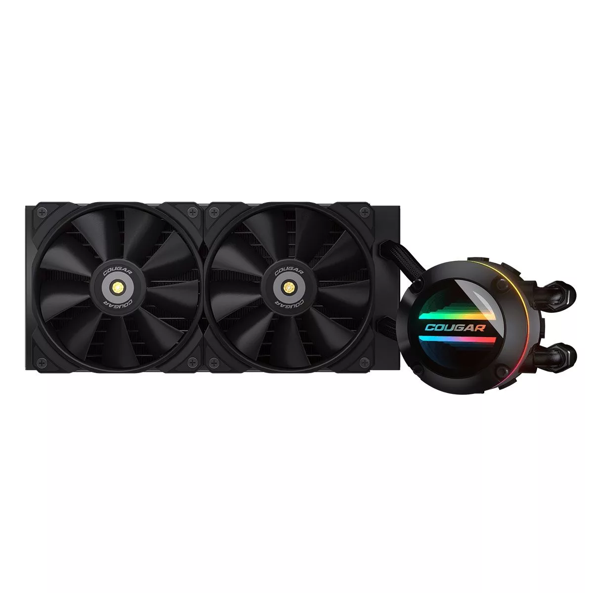 POSEIDÓN GT Refrigerador líquido todo en uno de alto rendimiento El enfriador líquido POSEIDON-GT AIO permite un alto rendimiento de enfriamiento. Con las exclusivas aletas UTTERIGHT de 90 grados, los ventiladores de alta eficiencia y la gloriosa iluminación ARGB en un diseño de espejo infinito, su sistema se verá genial y funcionará mejor. Diseño de aletas "UTTERRIGHT" Para una transferencia de calor eficiente La superficie de transferencia de calor está construida con aletas UTTERRIGHT que tienen forma en ángulo recto. Dicho diseño permite una mayor área de transferencia de calor y proporciona una mayor eficiencia de transferencia de calor en comparación con las aletas comunes. Iluminación ARGB brillante con espejo infinito El cabezal de bomba con iluminación ARGB en diseño de espejo infinito aporta estética a tu PC, convirtiéndola en una increíble obra de arte. Cabezal de bomba giratorio para orientación de logotipo El cabezal giratorio de la bomba está diseñado para reorientar el logotipo. Ajústelo sin esfuerzo a medida que construye la PC para mantener su configuración perfecta. Ventilador de alta eficiencia para radiador POSEIDON-GT está equipado con ventiladores MHP 120 que colaboran con el radiador de forma eficaz. Con el alto rendimiento (4,24 mmH2O, 82,48 CFM, 2000 RPM) y el cojinete reforzado con metal, puede mantener la temperatura de su CPU más fría con una excelente estabilidad y durabilidad. Cojinete de ZrO2 duradero y resistente El cojinete de la bomba está hecho de ZrO2, lo que brinda mayor resistencia y dureza para mejorar la durabilidad. ¡Confiable y fuerte! Control de ventiladores e iluminación con Core Box V3 COUGAR CORE BOX V3 está diseñado para controlar los ventiladores PWM y la iluminación ARGB al mismo tiempo. Un gran asistente para gestionar los componentes. Equípalo y libera el verdadero potencial. ***Core Box V3 no está incluido (se vende por separado).***